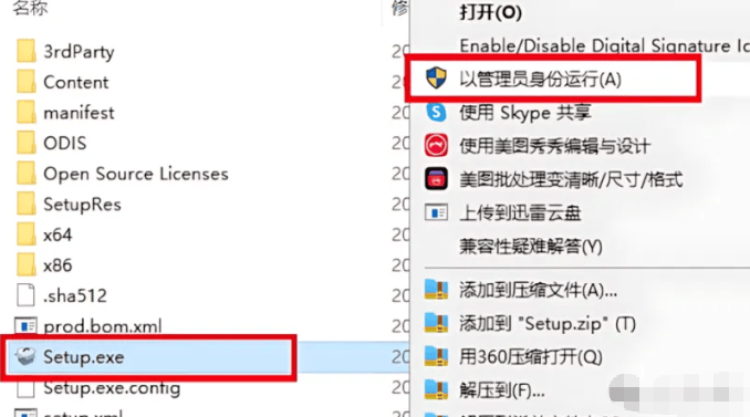 鼠标右击【setup】安装程序,选择【以管理员身份运行】。