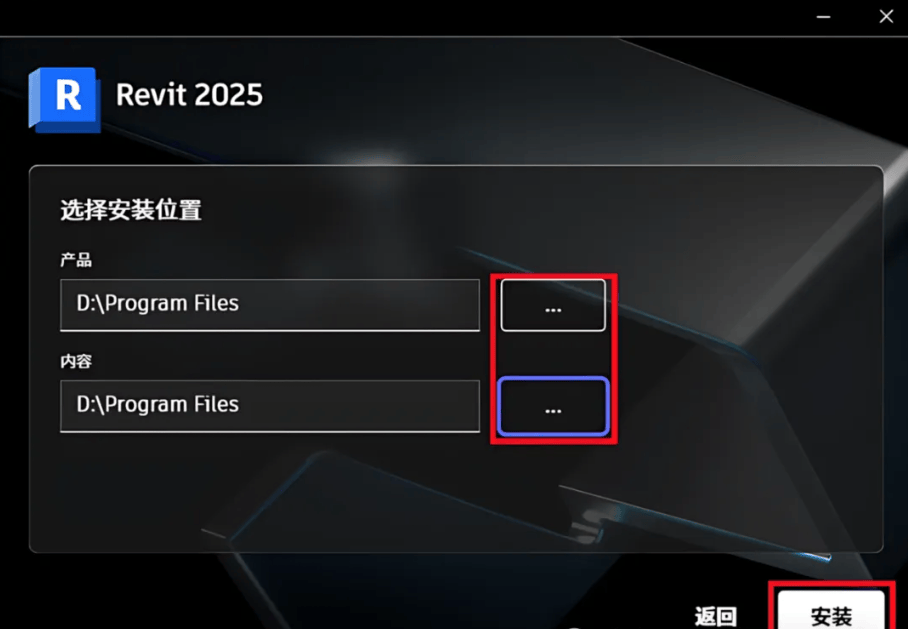 Revit默认安装路径为系统C盘里,点击【···】可以设置安装路径,建议安装到除C盘以外的磁盘,可以在D盘或者其它磁盘里创建一个新的文件夹,选中后点击【选择文件夹】。设置好安装路径后点击【安装】。