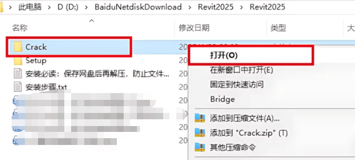 返回到解压的【Revit 20**】文件夹中,然后打开【Crack】文件夹。